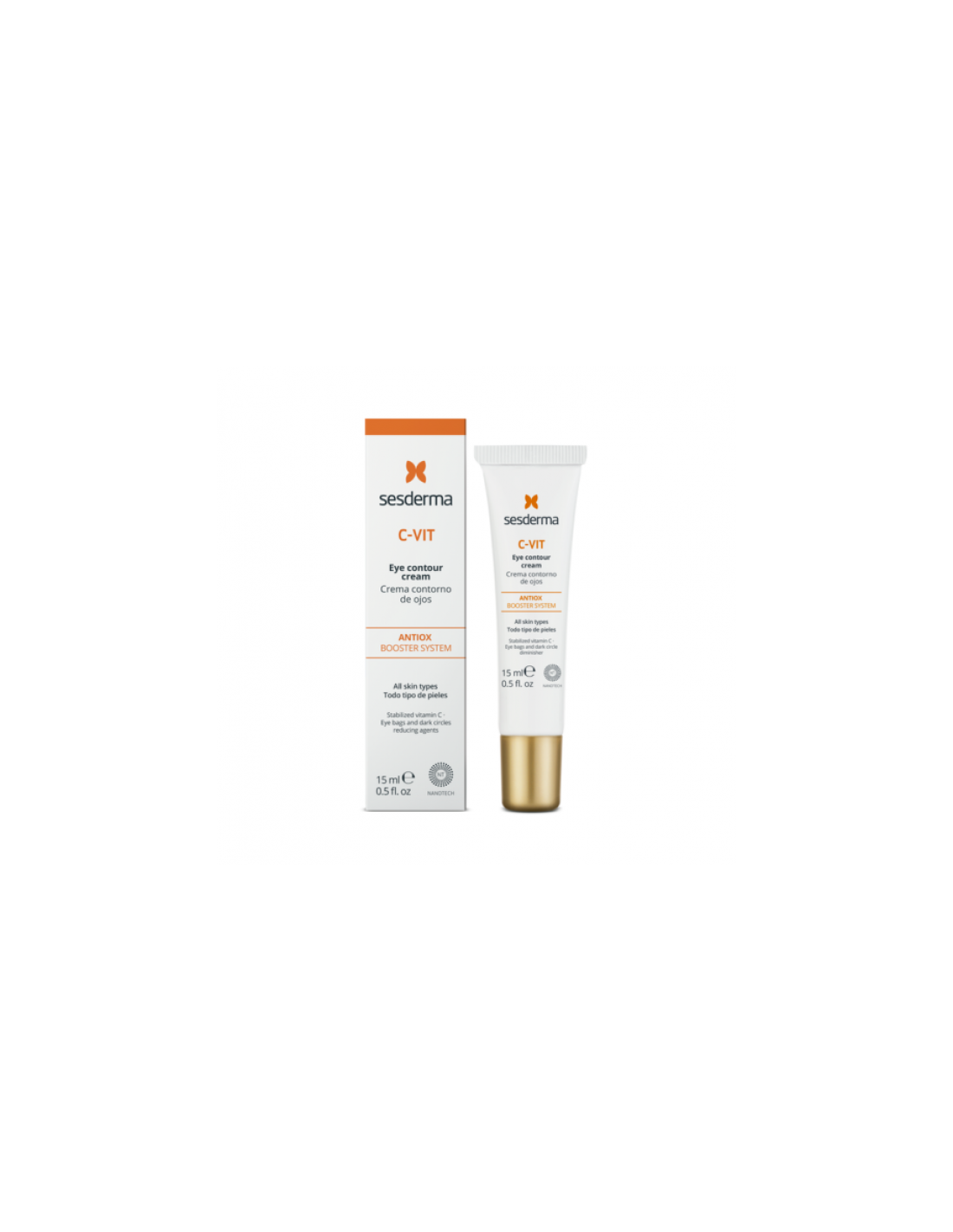 C-Vit Crema Contorno de Ojos en envase de 15 ml es un tratamiento específico para revitalizar y mejorar el aspecto de la delicada piel alrededor de los ojos. Su fórmula está enriquecida con vitamina C estabilizada, que proporciona una potente acción antioxidante, ayudando a reducir los signos de fatiga, bolsas, ojeras y líneas de expresión. Su uso continuo aporta luminosidad, uniformidad al tono de la piel y una apariencia más descansada y rejuvenecida. Esta crema está especialmente formulada para pieles apagadas, con signos de estrés o envejecimiento prematuro, y puede utilizarse tanto por la mañana como por la noche.