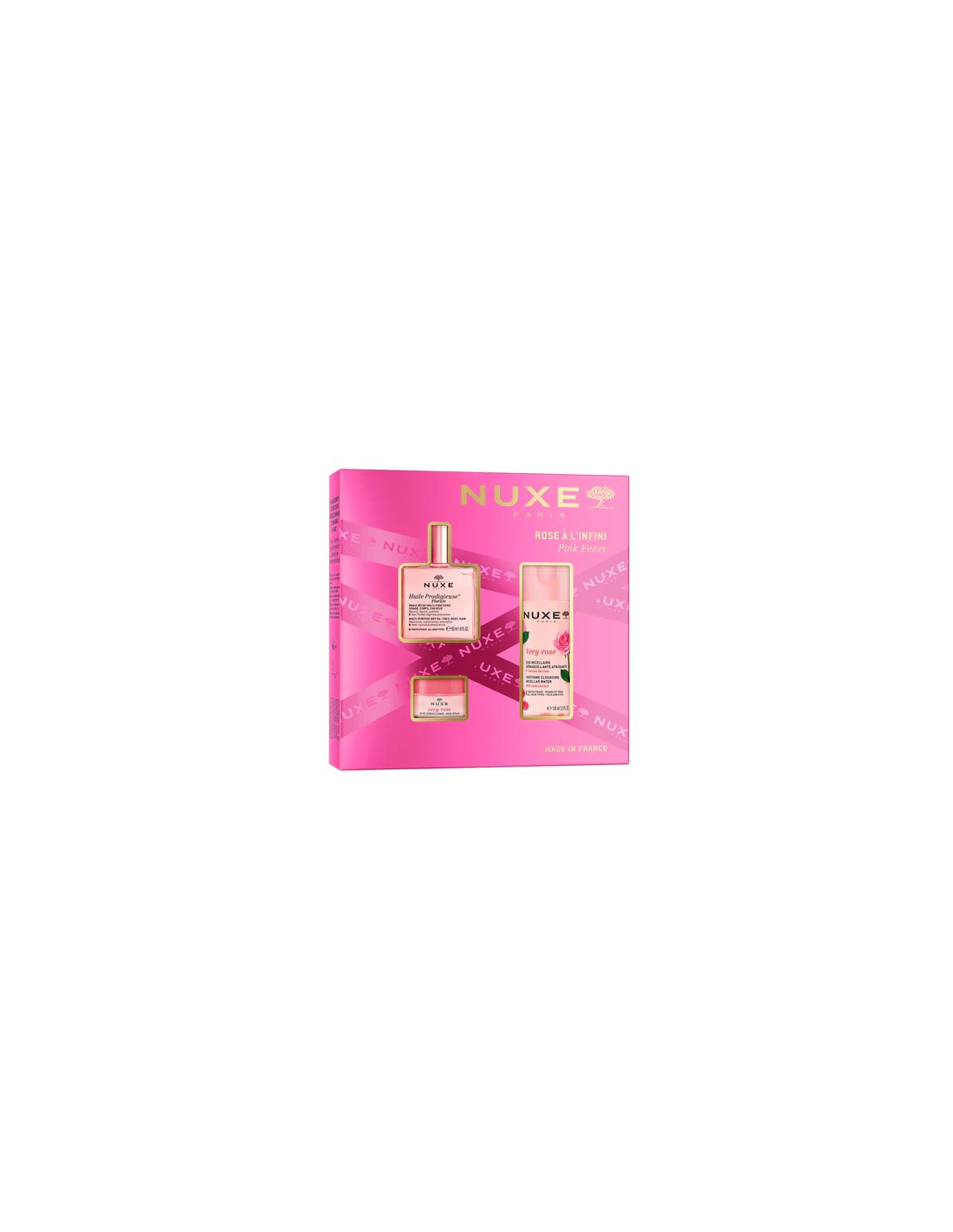 Los productos del NUXE Cofre Pink Fever 2025 están elaborados con ingredientes de origen natural como aceites vegetales preciosos, extractos florales, vitamina E y activos antioxidantes. Sin parabenos ni aceites minerales, su fórmula respeta la piel y el medio ambiente, garantizando un cuidado eficaz y sensorialmente placentero.