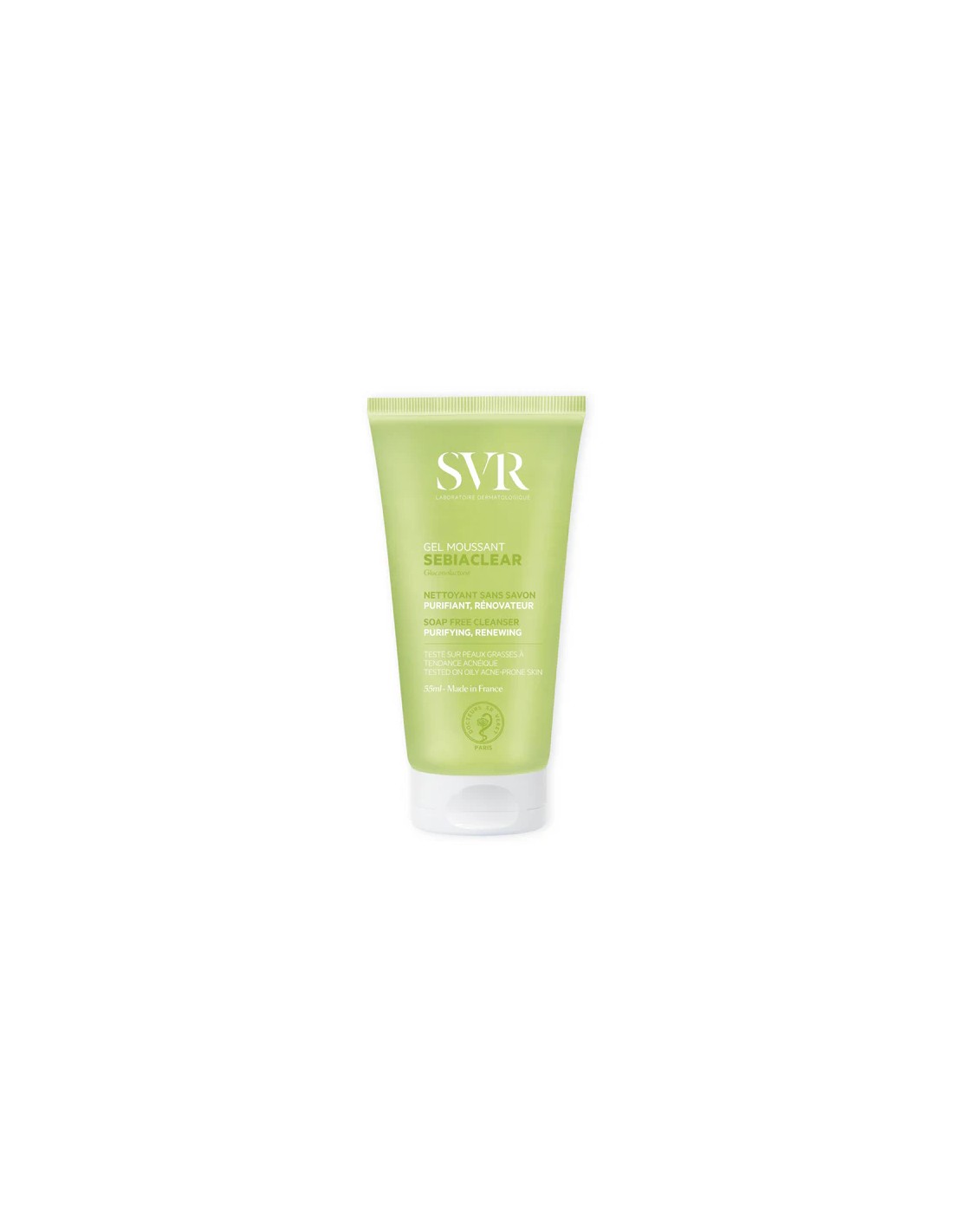 SVR Sebiaclear Gel Moussant 55ml es un gel limpiador purificante diseñado especialmente para pieles mixtas a grasas con tendencia acneica. Formulado por los laboratorios SVR, este gel elimina las impurezas y el exceso de sebo sin resecar la piel. Su fórmula suave y eficaz ayuda a reducir los granos y puntos negros, dejando la piel limpia, fresca y matificada.