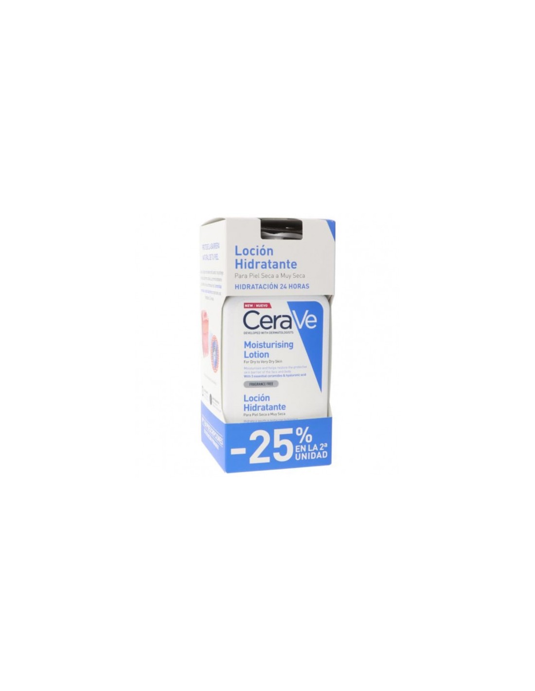 CERAVE DUPLO LOCIÓN HIDRATANTE es un pack de dos unidades de loción hidratante de 473 ml cada una, especialmente formulada para hidratar y restaurar la barrera protectora de la piel. Indicada para pieles normales a secas, su fórmula ligera y no grasa permite una hidratación duradera y efectiva sin obstruir los poros.