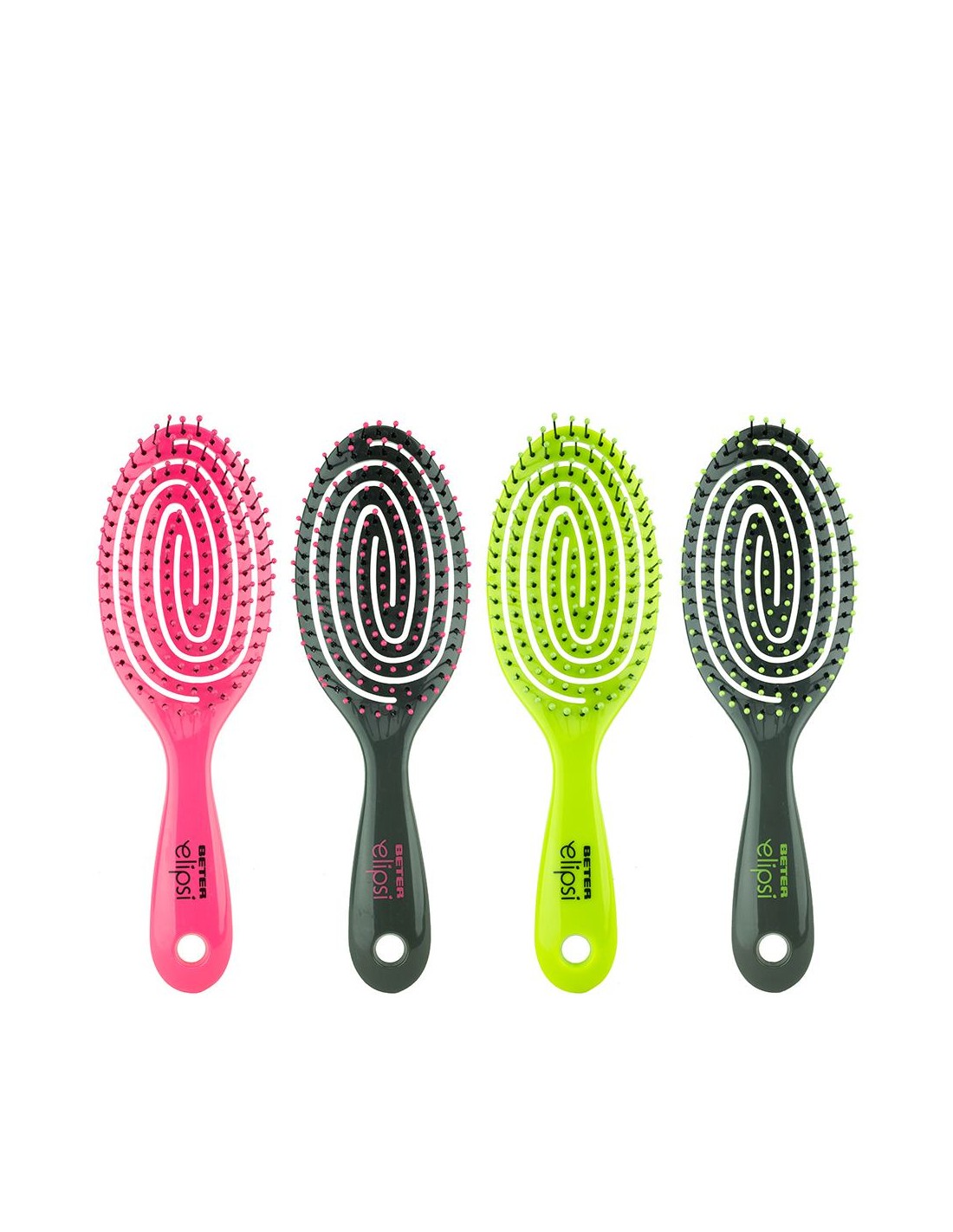 El Cepillo Elipsi Pequeño está compuesto por un mango ergonómico de material resistente y antideslizante, que proporciona un agarre cómodo y seguro. Sus cerdas están diseñadas en material flexible que se adapta al contorno del cuero cabelludo, proporcionando un masaje suave que estimula la circulación y favorece la salud capilar. La base del cepillo cuenta con un acolchado que amortigua el impacto y protege el cabello durante el peinado.