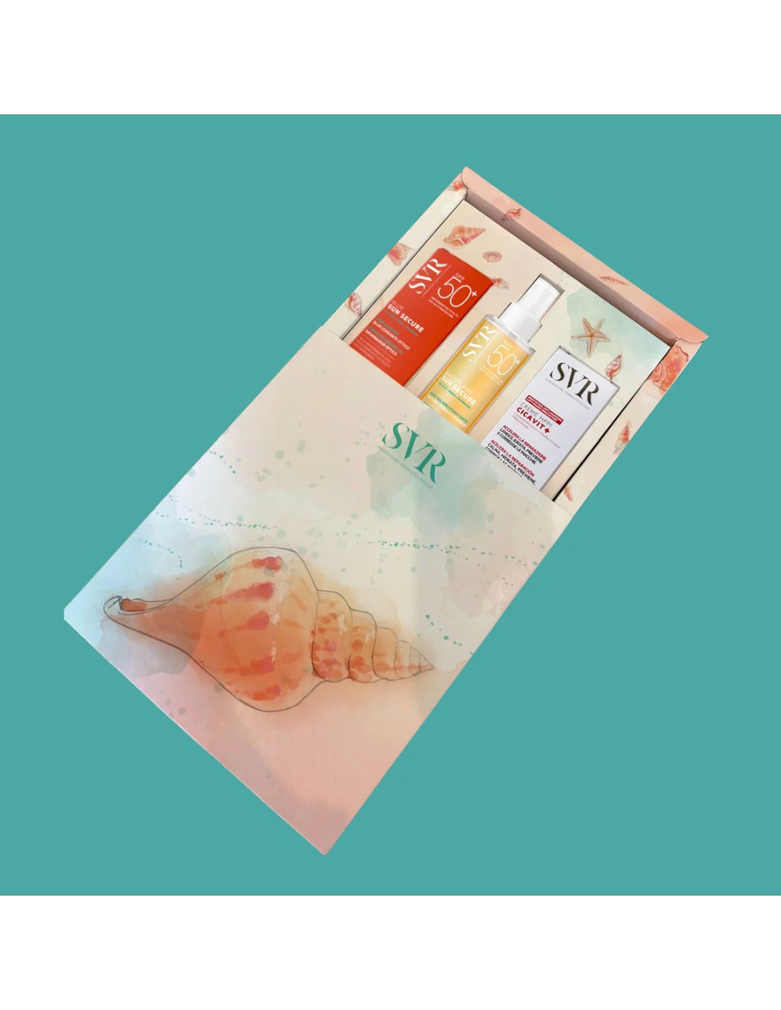 El SVR SUN SECURE Cofre Areta Tortuga es un set de protección solar ideal para toda la familia, que combina cuidado dermatológico y compromiso con el medio ambiente. Incluye productos de la gama SUN SECURE con alta protección SPF50+, en un práctico estuche reutilizable con diseño de tortuga, perfecto para llevar a la playa o piscina. Este cofre destaca por su enfoque eco-responsable y su fórmula respetuosa con la piel y el entorno marino.