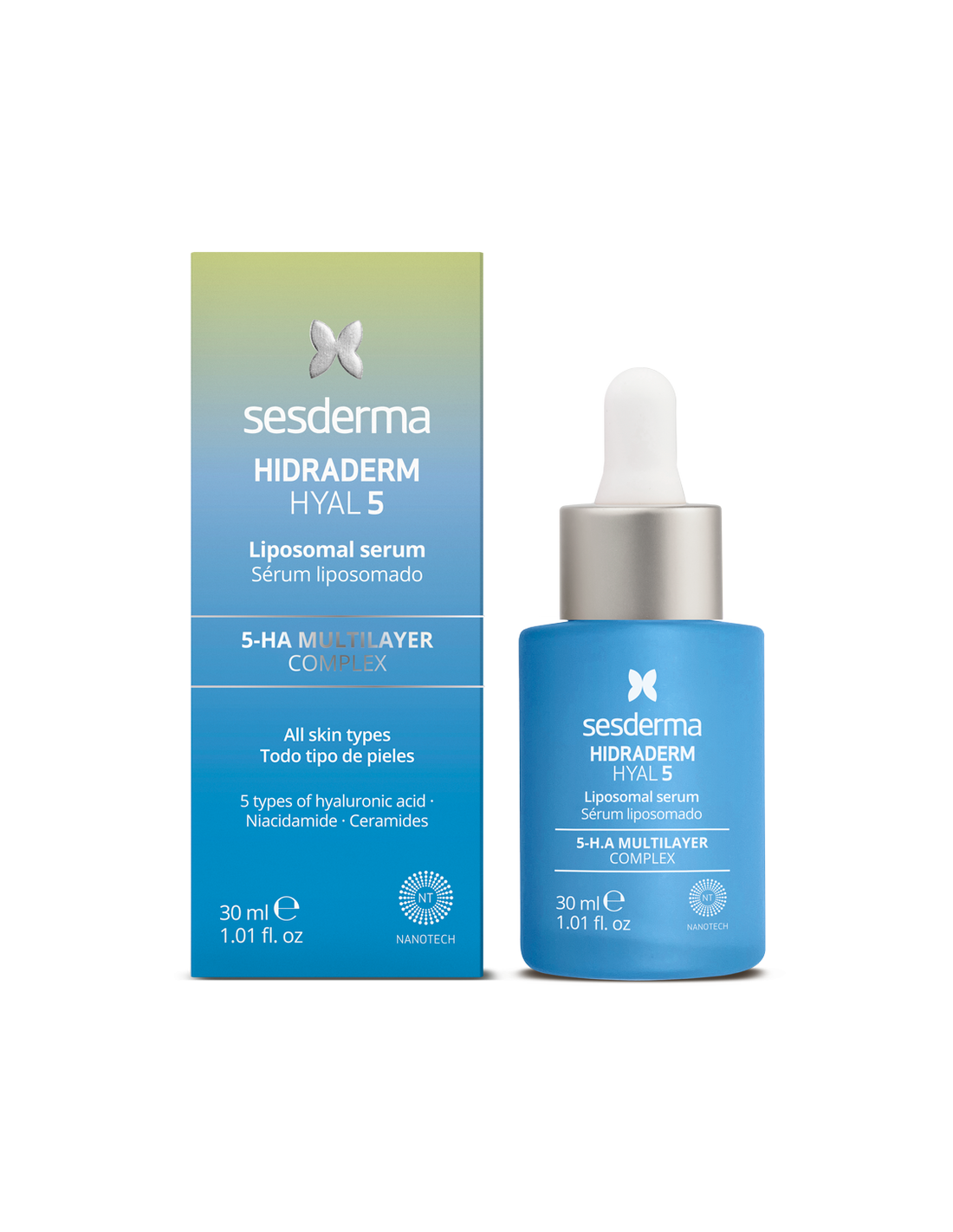 Sesderma Hidraderm Hyal 5 Serum Liposomal es un tratamiento intensivo formulado para hidratar profundamente la piel, aportando frescura, elasticidad y luminosidad desde la primera aplicación. Su fórmula innovadora combina cinco tipos de ácido hialurónico con diferentes pesos moleculares que actúan en todas las capas de la piel, ofreciendo una hidratación de acción inmediata y prolongada. Además, su tecnología liposomal mejora la penetración de los activos, asegurando resultados visibles en pieles secas, deshidratadas o apagadas. Es ideal tanto para prevenir los primeros signos de envejecimiento como para complementar otros tratamientos dermatológicos.