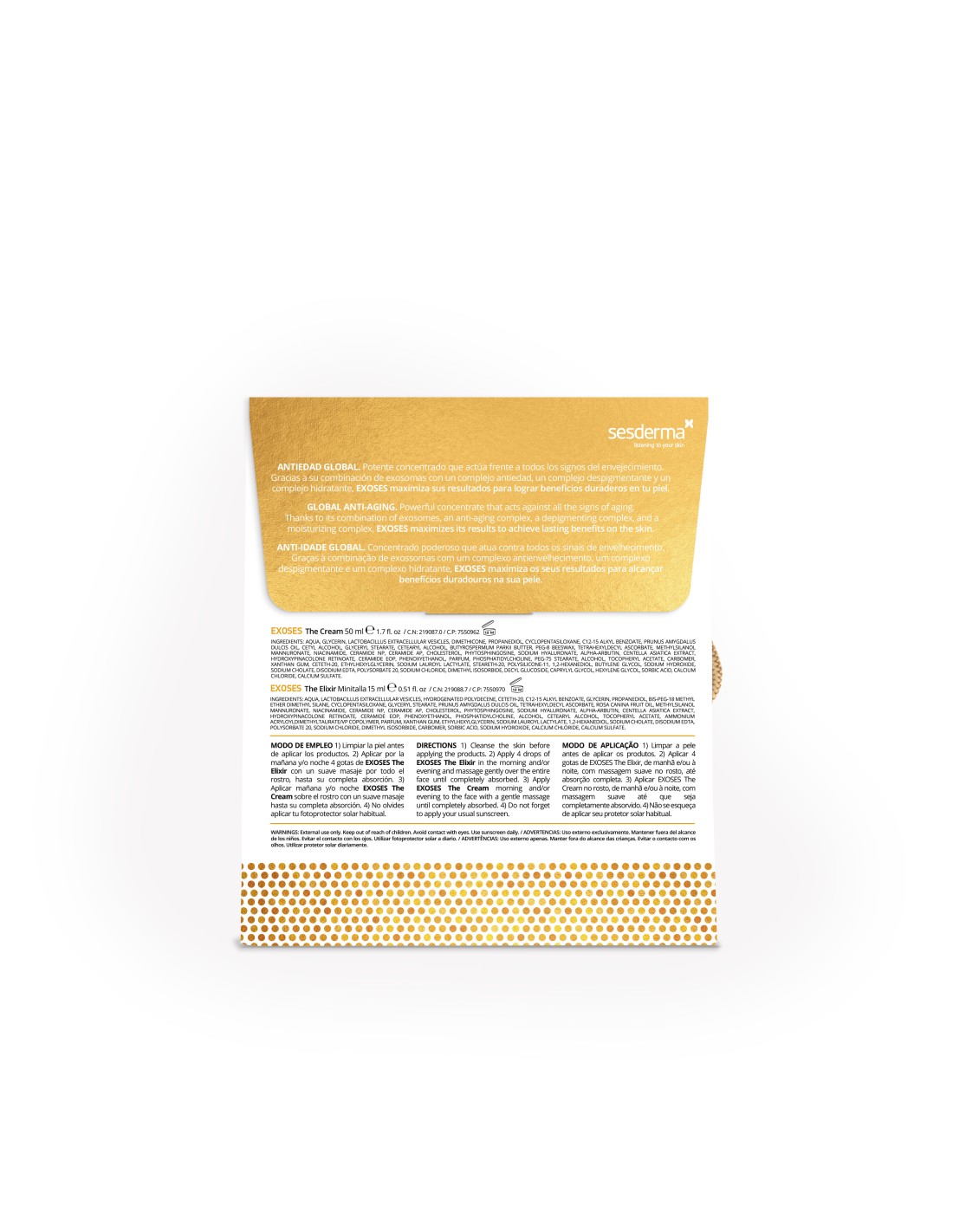 Aplicar los productos incluidos en el cofre sobre la piel limpia y seca, siguiendo el orden recomendado por Sesderma: primero el sérum Exoses para potenciar la acción celular y, a continuación, la crema facial para sellar la hidratación. Masajear suavemente con movimientos circulares hasta su completa absorción. Utilizar diariamente, preferiblemente por la mañana y por la noche.