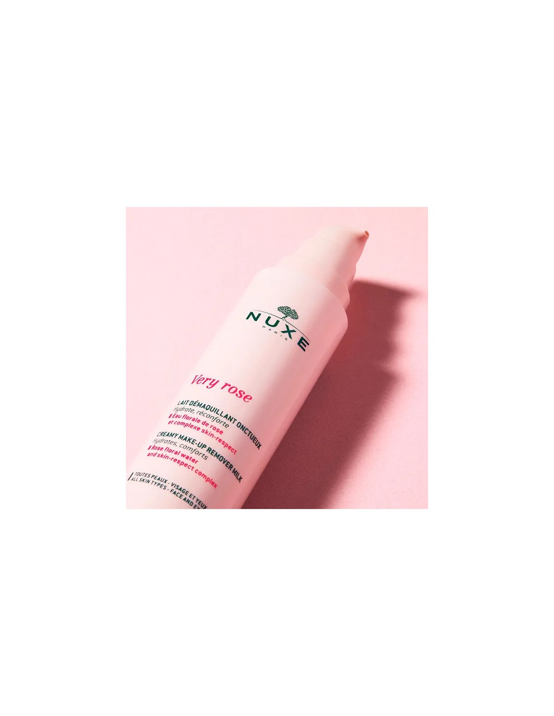 NUXE VRose Leche Desmaquillante Cremosa 200 ml es un limpiador facial suave y nutritivo, especialmente formulado para pieles sensibles y delicadas. Esta leche desmaquillante elimina eficazmente el maquillaje, las impurezas y el exceso de sebo sin resecar la piel, dejando un tacto suave y confortable. Enriquecida con pétalos de rosa y extractos vegetales, proporciona hidratación y confort, aportando una sensación de frescura y bienestar desde el primer uso. Su textura cremosa facilita la aplicación y asegura una limpieza profunda sin irritación.