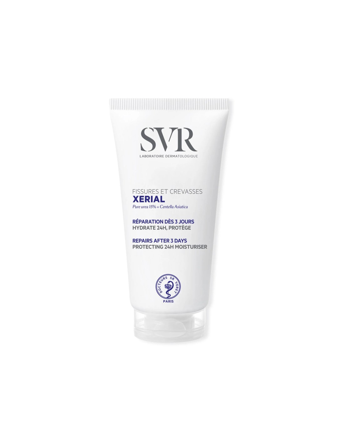 SVR XERIAL Fissures es una crema reparadora intensiva diseñada para tratar las grietas y fisuras de la piel en áreas como talones, pies y manos. Gracias a su alta concentración de activos, ayuda a reparar y cicatrizar la piel agrietada, aliviando el dolor y restaurando la suavidad de la piel en poco tiempo.